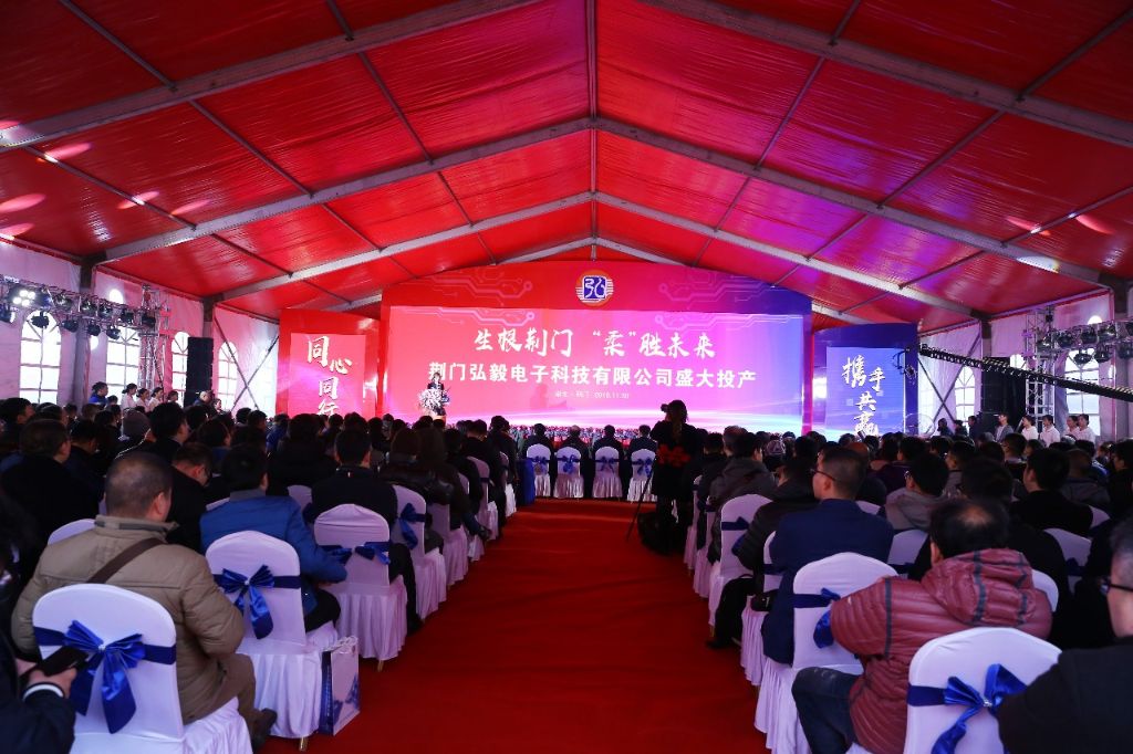 2019年11月30日,荊門弘毅電子科技有限公司投產(chǎn)儀式在荊門弘毅電子產(chǎn)業(yè)園隆重舉行。開業(yè)慶典主題為“生根荊門,柔勝未來”,荊門市、區(qū)政府領(lǐng)導(dǎo)、重要客戶以及戰(zhàn)略合作伙伴等三百余人親臨現(xiàn)場共襄盛舉。