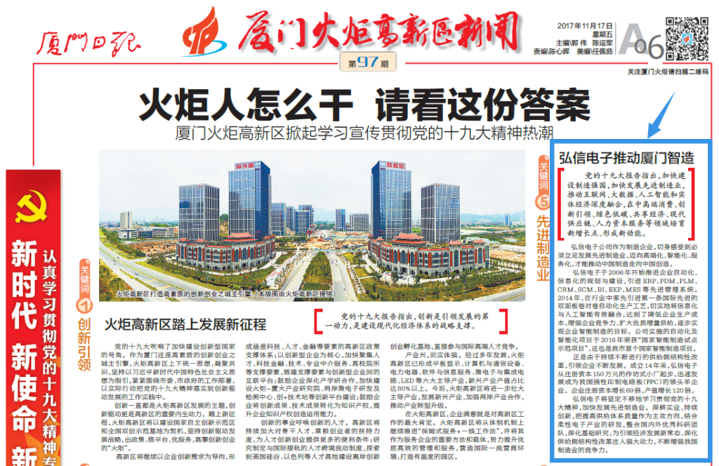 弘信電子將堅定不移地學(xué)習(xí)貫徹黨的十九大精神,加快發(fā)展先進(jìn)制造業(yè)。深耕實業(yè),持續(xù)創(chuàng)新,把提高供給體系質(zhì)量作為主攻方向,結(jié)合柔性電子產(chǎn)業(yè)的研發(fā),整合國內(nèi)外優(yōu)秀科研團(tuán)隊,深化基礎(chǔ)研究,為引領(lǐng)經(jīng)濟發(fā)展新常態(tài)、深化供給側(cè)結(jié)構(gòu)性改革注入強大動力,不斷增強我國制造業(yè)的競爭力。